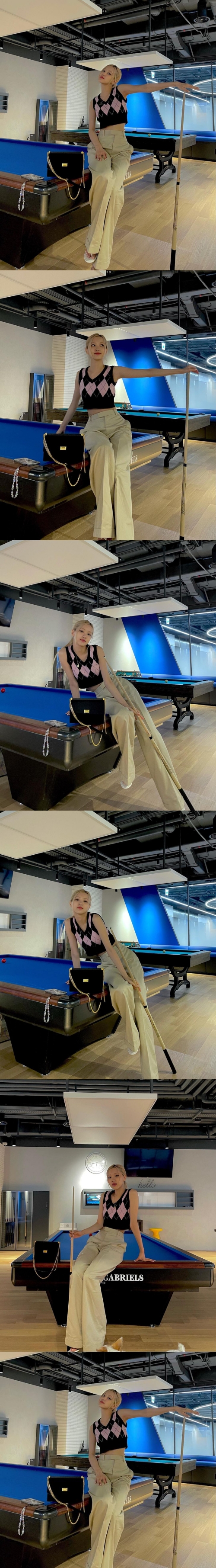 別の写真では、ビリヤード台の前でキューを片手にポーズを決めるロゼの姿が写っており、非現実的な脚の長さが見る者を感嘆させた。