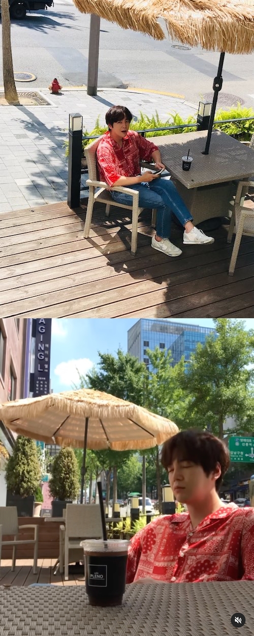 写真と動画の中のチャン・グンソクは、カフェのテラス席に座っている。リゾート感たっぷりの赤いシャツとデニムというコーディネートに加え、日陰を作っている藁風のパラソルなどが、まるでハワイにいるかのような雰囲気だ。テーブルにはコーヒーが置いてあり、彼がのんびりと休憩していることをうかがわせる。