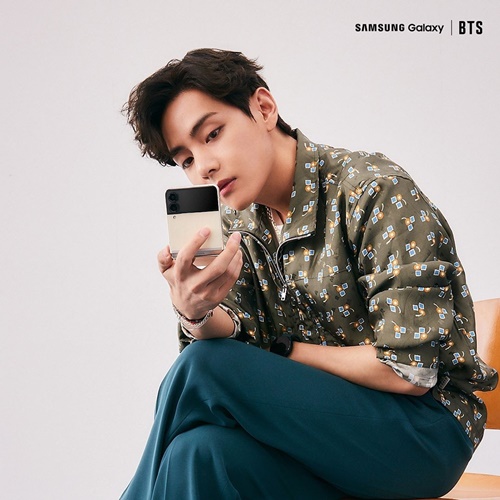 「Samsung Mobile」は8月12日、公式インスタグラムを更新。写真には、サムスンの新フォルダブルフォン(折りたたみスマートフォン)「Galaxy Z Flip 3」を持ったVの姿が。