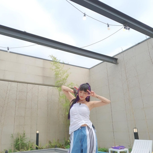 写真には、白いキャミソール姿のBoAが写っている。ロングヘアをハーフアップにし、サイドを紫に染めた個性的なヘアスタイルが印象的だ。爽やかな笑顔で、21年という年月を感じさせない美貌を見せつけている。