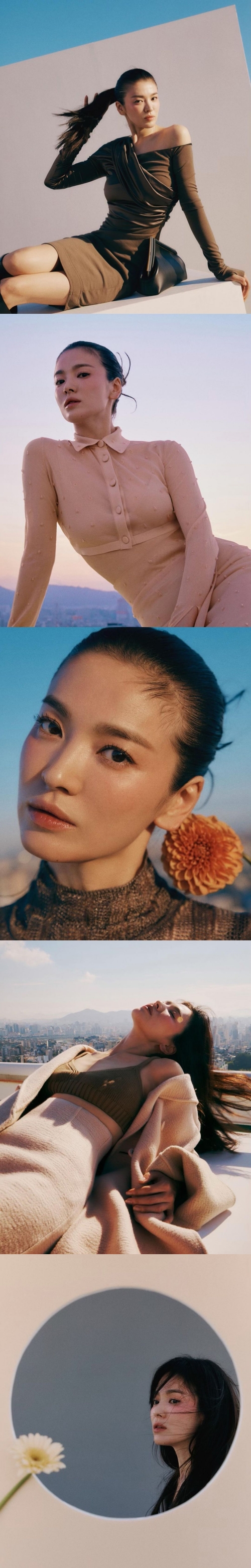 さまざまなポーズや表情で圧倒的なビジュアルを見せつけたソン・ヘギョは、オフショルダーワンピースやセットアップなどのアイテムを見事に着こなしている。