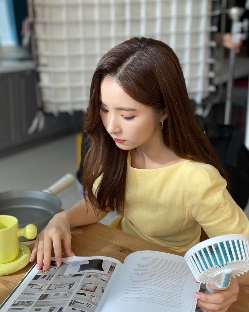 投稿された写真には、雑誌を眺めるシン・セギョンの姿が。小さい顔と整った目鼻立ちが印象的だ。