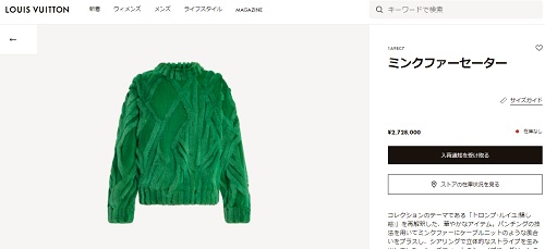 特にミンクファーセーターは、2021年の秋冬の新作ながら、インターナショナル公式ホームページを除いて販売中のすべての国家で品切れになったというのだから驚きだ。