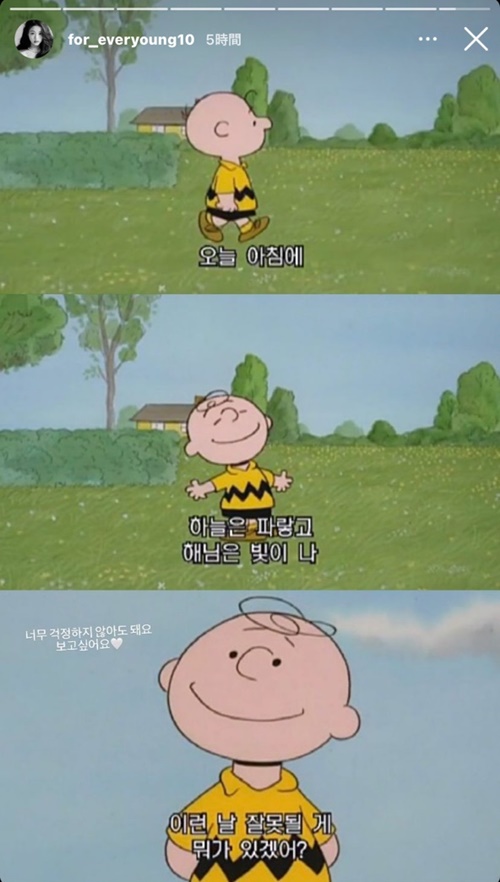 チャン・ウォニョンは9月1日、自身のインスタグラムのストーリーに「あまり心配しなくても大丈夫です。会いたいね♡」という言葉と、チャーリー・ブラウンの画像を投稿し、ファンを安心させた。