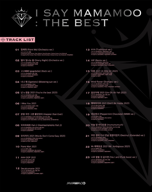 MAMAMOOが本日(9月8日)、公式SNSを通じて来る9月15日にリリースされるベストアルバム『I SAY MAMAMOO:THE BEST』のトラックリストイメージを公開した。