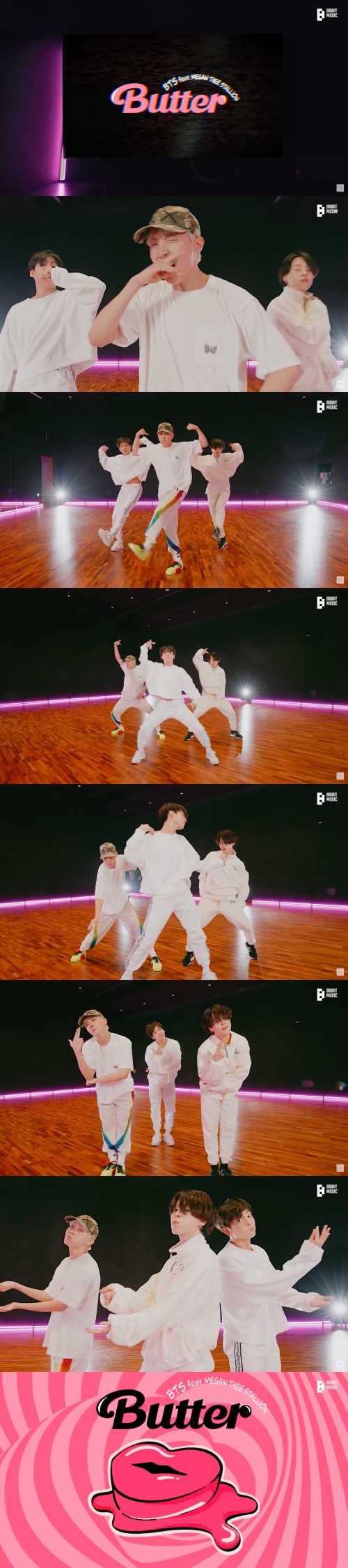 これは、8月27日に世界同時公開された『Butter(feat. Megan Thee Stallion)』のパフォーマンス映像。冒頭では7人のメンバーが『Butter』を踊っているが、途中で映像が切り替わり、JUNG KOOK、JIMIN、J-HOPEの3人が『Butter(feat. Megan Thee Stallion)』の曲に合わせて新しい振り付けを披露している。