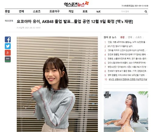 9月13日、韓国メディアの『Newsen』は「横山由依がAKB48卒業発表」と題し、「横山由依は9月12日に開催された『MX夏祭りAKB48 2021年最後のサマーパーティー』で卒業を告げた」と報道。