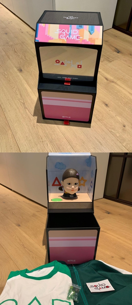 よく見ると「Netflix」「イカゲーム」と書かれており、現在配信中のNetflixオリジナルシリーズ『イカゲーム』のグッズであることがうかがえる。