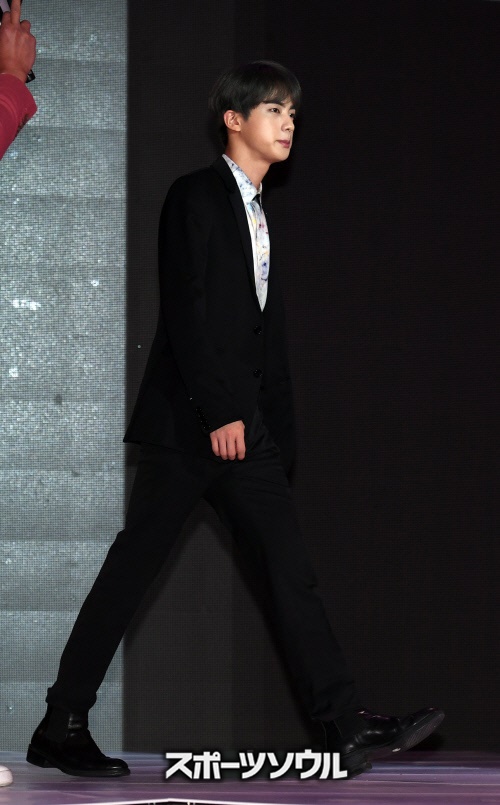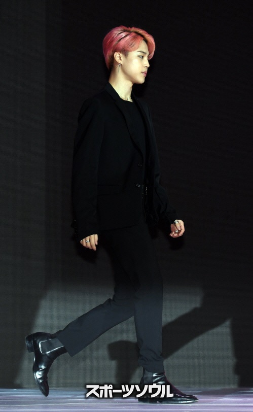 ジミン。オールブラックのスーツスタイルでシンプルに