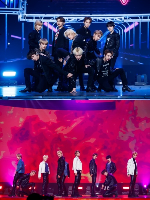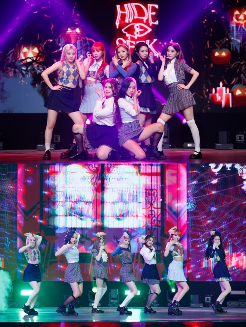 3月にデビューした“MAMAMOOの妹分”PURPLE KISSは、ハロウィンらしいダークテイストなステージで『Freaky Purky+Zombie』をポップ且つクールに披露。デビュー曲『Ponzona』のステージでは、今年デビューしたばかりとは思えないほどのカリスマ性を発揮している。