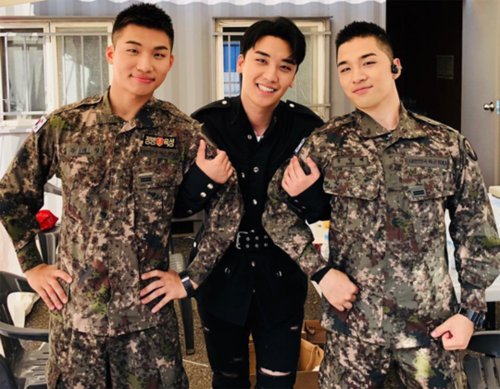 V.Iは自分のインスタグラムに「たくましく健康に軍生活をしている #トン・ヨンベ(SOL) #カン・デソン(D-LITE)一等兵たちに会いにきました」というキャプションと、2枚の写真を掲載した。