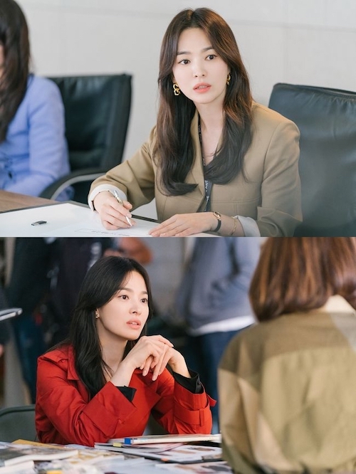 新しく公開されたスチール写真には、仕事熱心なハ・ヨンウンの姿が写っている。ファッション会社のデザインチーム長という職業にふさわしいコーデもさることながら、キャラクターにどっぷり浸かったソン・ヘギョの存在感が感嘆を誘う。