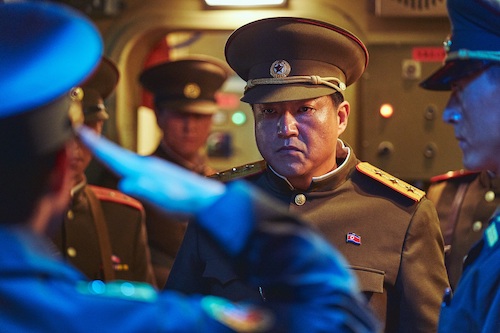 併せて解禁された場面写真では、首脳たちの鋭い表情を切り取ったものや、潜水艦内で北朝鮮の軍人に銃を向けられるハン大統領の様子などが切り取られている。
