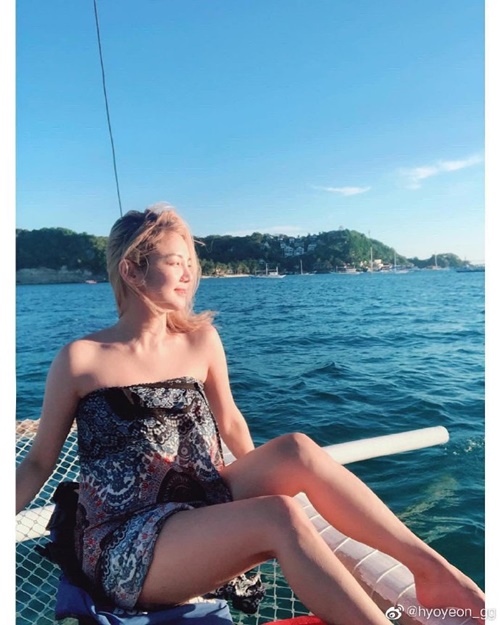 ヒョヨンは去る4月19日、自身のWeibo(中国のSNS)にハワイで撮影した写真を数枚掲載。公開された写真には、ヨットに乗って青い海で休暇を楽しむヒョヨンの姿が映る。ナチュラルメイクでありながら確かな美しさを放ち、見る者を惹きつけている。