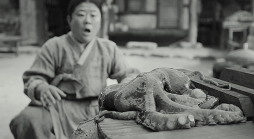 若銓が「採れたてのタコはこんな味なのか」とその美味しさに驚くように、モノクロでも美味しそうに見えるシーンとなっている。本作では随所に多くの魚や魚介料理が登場し、ピョン・ヨハンの漁夫の演技とともに注目ポイントの1つだ。