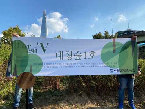 韓国のソウル環境運動連合(以下、ソウル環境連合)は10月19日、BTS(防弾少年団)メンバーのV(本名:キム・テヒョン)のファン170人余りと力を合わせ、蚕室漢江(チャムシル・ハンガン)公園の蚕室大橋付近に、Vがファンに与えてきた大きな幸せと感謝の気持ちを込めて、「テヒョンの森1号」を造成した。