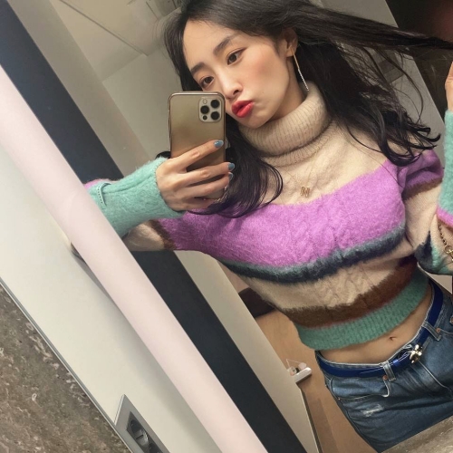 KARA出身ニコル、“おへそ出しニット姿”に反響「ウエスト細すぎる!」【PHOTO】