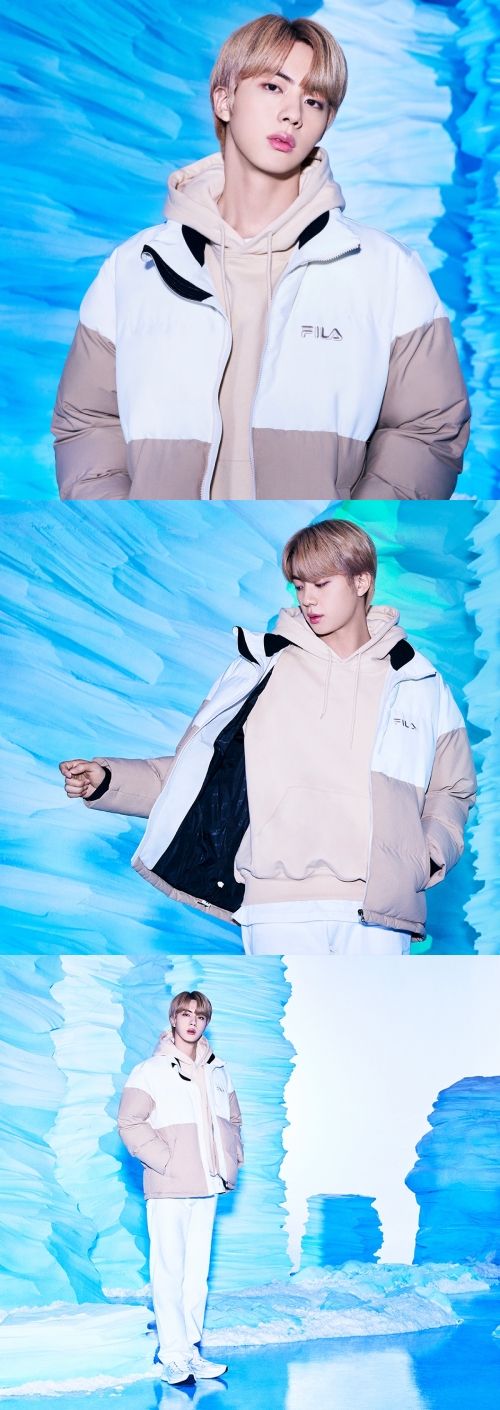 広告には、氷の洞窟を舞台に、FILAのダウンジャケットをクールに着こなすBTSの姿が。これからの季節にぴったりな“スタイリッシュウィンターコーデ”を提案しながら圧倒的なビジュアルを誇っている。