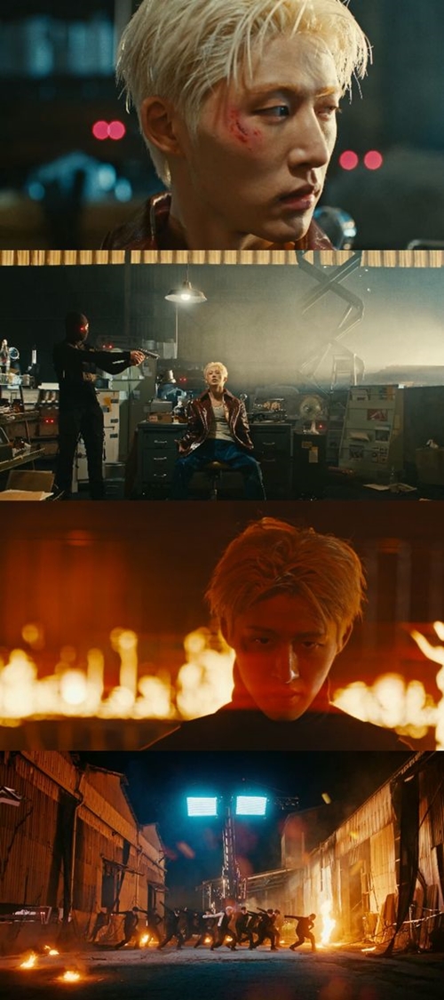 映像の冒頭では、火が吹くステージでパワフルなラップを披露。彼の顔の傷と眼差しからは、荒々しい魅力を見せている。さらに、自我に対して銃を向けるシーンでは見る人の目を引いた。