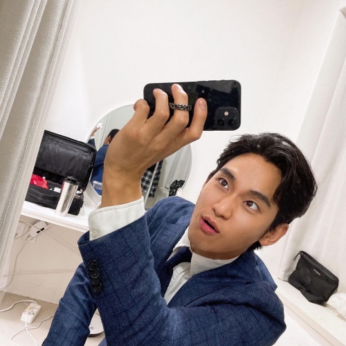 写真には、控え室の鏡の前で自撮りをするキム・スヒョンの姿が。前髪はアップにして、スーツを見事着こなしたフォーマルなスタイルは、ファンを魅了した。