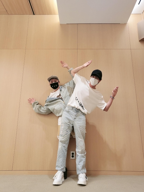 JIMINはスタイリッシュなオールブラックコーデ、JUNG KOOKはカラフルなシャツとカーゴパンツというパンクなスタイリングを見せつけた。お互いの雰囲気にマッチした着こなしが印象的だ。