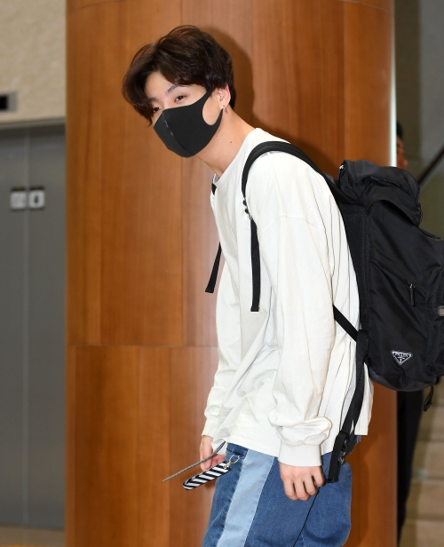 寝ぼけ眼のJUNG KOOKの空港コーデは、2019年4月5日に金浦国際空港で撮られたもの。タイで行われるワールドツアー『BTS WORLD TOUR ‘LOVE YOURSELF’』のために 空港を訪れたJUNG KOOKは、白のスウェットにラインが入ったデニムパンツというラフな装いだ。「プラダ」(PRADA)のバックパックを合わせることで、カジュアルになりすぎないこなれた雰囲気に。