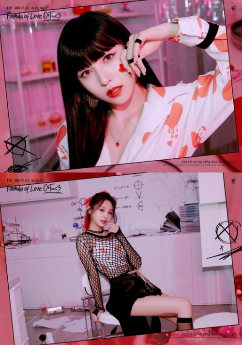所属事務所のJYPエンターテインメントは11月3日、公式SNSにTWICEの3rdフルアルバム『Formula of Love: O+T=<3』の個人コンセプトフォトを公開した。