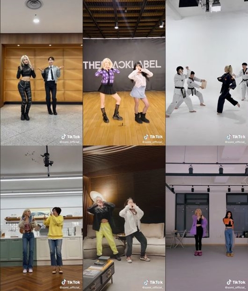 続いて、YGXダンサーのリジョンを始めとし、GOT7のベンベン、2AMのチョ・グォン、チョンハ、パク・ミソンなど、さまざまなアーティストたちと一緒に『XOXO』のダンスチャレンジに参加した。TWICEのチェヨンは、チョン・ソミの事務所に直接訪れて参加したようだ。さらに、aespaのジゼルとのチャレンジ動画も公開し、幅広い人脈を披露した。