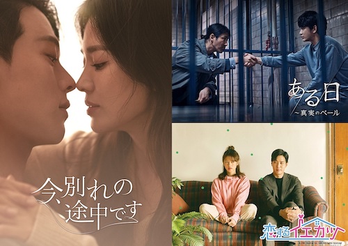 このたび注目の3作品となるキム・スヒョンとチャ・ スンウォンが共演し日韓同時配信となる注目の社会 派犯罪ドラマ『ある日~真実のベール』、実力派女優チョン・ソミンとツンデレ演技で女心をくすぐるキム・ジソク共演のラブコメディ『恋するイエカツ』と、人気上昇中の俳優チャン・ギヨンと、韓国トップ女優ソン・ ヘギョが共演するラブストーリー『今、別れの途中です』のキービジュアルが解禁となりました。
