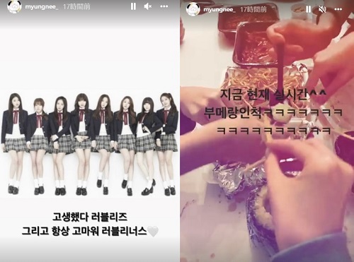 メンバーのジンも同日、インスタグラムストーリーに「苦労したねLOVELYZ、そしていつもありがとうLOVELYZ」と書き、全員で集まったパーティーの動画まで公開した。ジンはファンからの質問に答えながら、「記念パーティーはYouTubeチャンネルで、すぐに。私が全部映しておいた」「スジョンや私は明け方4時までおしゃべりして眠った」「ケーキはジエ」「私たちはみんな運動服だった」「お酒はあまり飲まなかったと思う」など、“記念パーティー”の様子を伝えた。