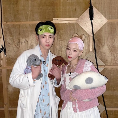 写真の中のキーとテヨンは可愛いパジャマを着たまま、子犬のぬいぐるみを胸に抱いている。2人はアイマスクや様々なアクセサリーでポイントを与え、格別なファッションセンスも披露した。