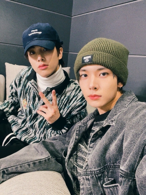 写真には、キャップを被りクールな雰囲気のHEESEUNGとJAKEが写っている。