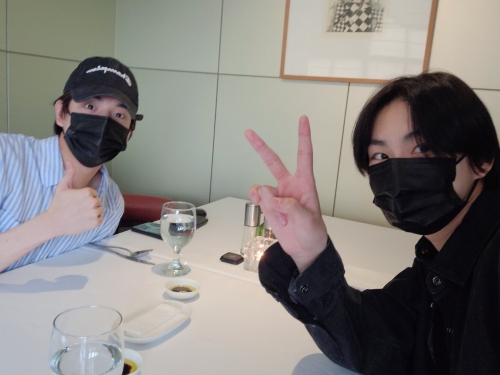 JUNGWONもJAKEとの食事風景を投稿。料理が来る前に撮ったセルカは、若干ぶれてはいるものの2人の楽しそうな雰囲気が伝わってくる。