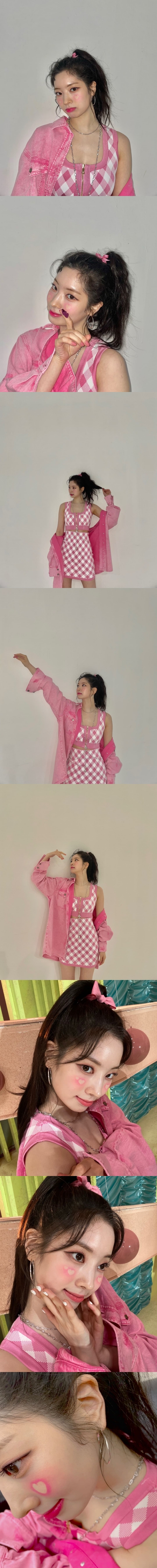 写真には、全身ピンクの衣装がキュートなダヒョンの姿が写っている。