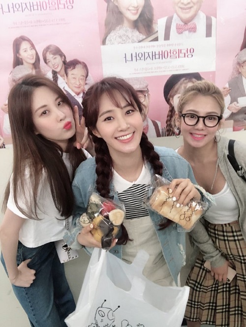 公開された写真には、少女時代のソヒョン、ユリ、ヒョヨンの姿が並んで写っていた。演劇『アンリおじいさんと私』で、コンスタンス役を熱演中のユリを応援するため、ソヒョンとヒョヨンが会場を訪れたのだ。