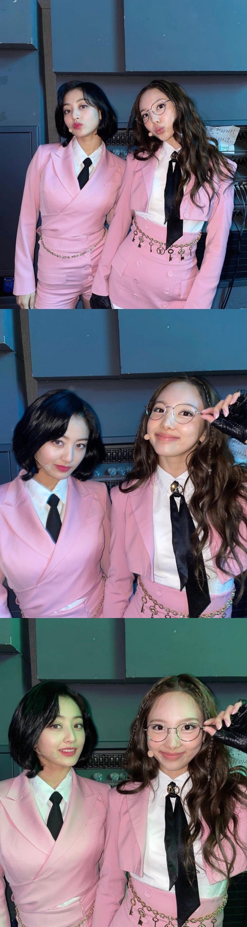 写真には、新曲『SCIENTIST』の衣装に身を包んだナヨンとジヒョの姿が。ピンクを基調とした制服のような衣装が2人の愛らしい魅力をより一層引き立たせている。