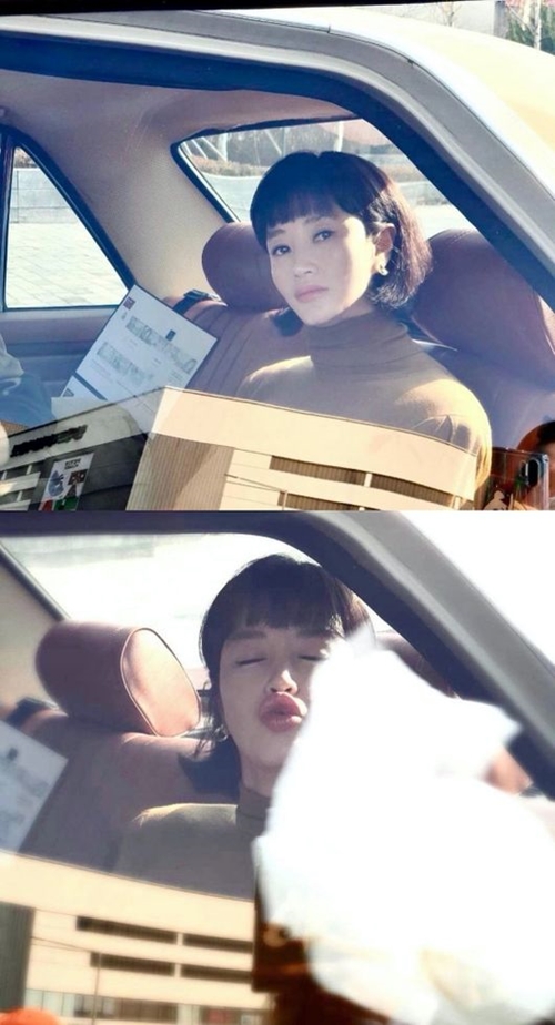 公開された写真のキム・ヘスは車の後部座席に座ってカメラを見つめている。キュートなヘアスタイルで、より一層若く見える美貌が目を引く。
