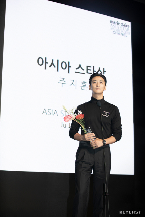 「今年はありがたいことに様々な映画で観客の皆さんに沢山お会いできた。K-POP、韓国ドラマがアジアを超えて世界で脚光を浴び、力を発揮していると思う。韓国映画はそのバトンを繋ぐ気風と希望を持っている。良い賞をいただいて本当に感謝しているし、これからも素晴らしい映画作品でお会いしたい」と、受賞の感想を語るチュ・ジフン。