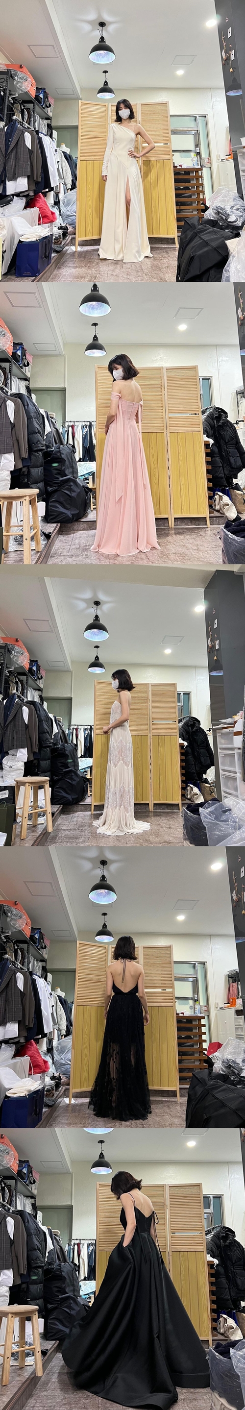 女優のパク・ハソンがドレス選びで悩んでいる。