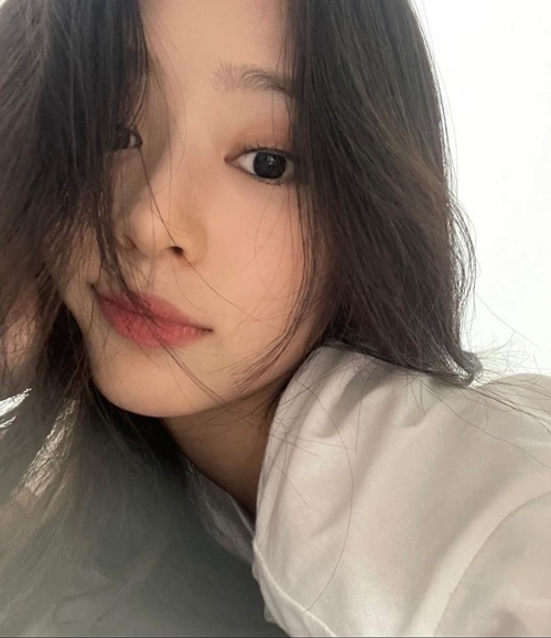 写真には、超至近距離で自撮りをするキム・ミンジュが写っている。何気ない表情はさることながら、キラキラと輝く目でカメラを見つめる姿が見る者を魅了させている。