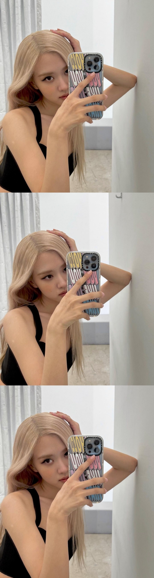 写真には、鏡の前で自撮りをするロゼの姿が写っている。艶やかなブロンドヘアと、こちらを見つめる吸い込まれそうな眼差しが印象的だ。
