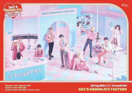 所属事務所JYPエンターテインメントは1月7日、「Stray Kids 2ND #LoveSTAY 'SKZ’S CHOCOLATE FACTORY」のポスターを公開した。ポスターの内容によると、ファンミーティングは2月12日午後6時、13日午後5時にソウルのオリンピック公園オリンピックホールで開かれ、13日の回はオフラインと共にBeyond LIVEを通じてオンラインでも生配信(有料)される。