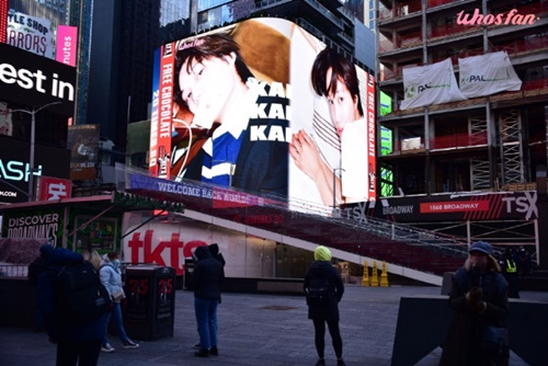 大型電光掲示板に掲出された誕生日記念広告は、現地時間で1月10日から16日までの1週間公開される予定だ。「Whosfan」は13日、YouTubeチャンネル『WhosfanTV』で当該広告が掲出されている現地映像を公開している。