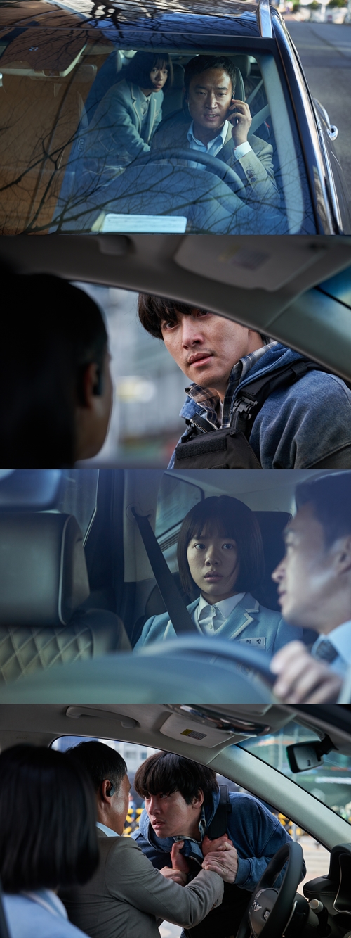 併せて、緊張感をみなぎる主人公ソンギュ演じるチョ・ウジンや、不敵な爆弾犯演じるチ・チャンウクの姿を捉えた場面写真も解禁となった。