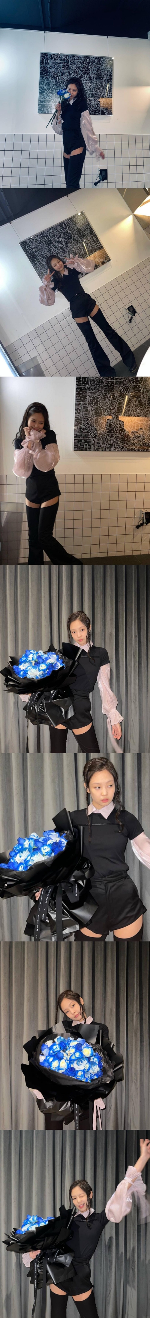 写真には、青いバラを持ちながらこちらを見つめるジェニーの姿が写っている。