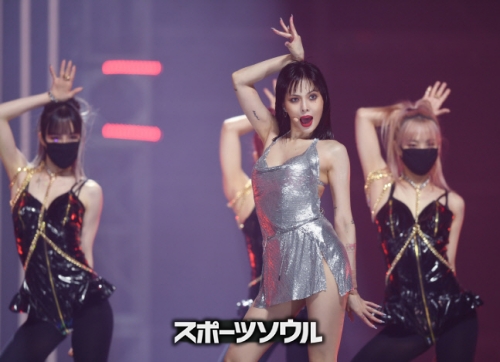 ヒョナとイドンは1月23日、ソウル高尺(コチョク)スカイドームで開催された「第31回ハイワンソウル歌謡大賞」(以下、ソウル歌謡大賞)授賞式で人気曲『PING PONG』のパワフルなパフォーマンスを披露した。