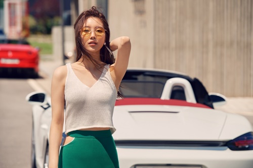 サングラス越しの柔らかな眼差しでペ・スジならではの透明感あふれる魅力を発散しただけでなく、都会的な風景の中で夏の日差しを浴び、ゴージャスな印象を与えることも忘れなかった。