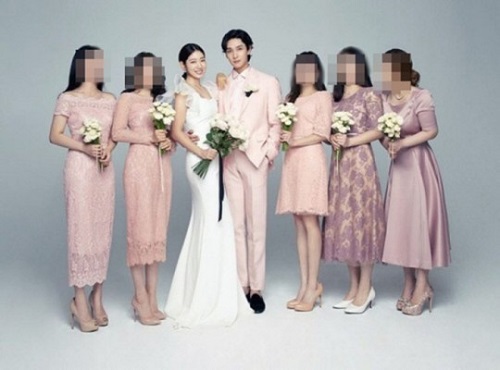 写真には、パク・シネ&チェ・テジュン夫婦のウェディング写真が含まれた。ピンクのドレスを合わせて着た親友たちの間で、優しくお互いを抱きしめながら立っているパク・シネ&チェ・テジュン夫婦の姿があった。