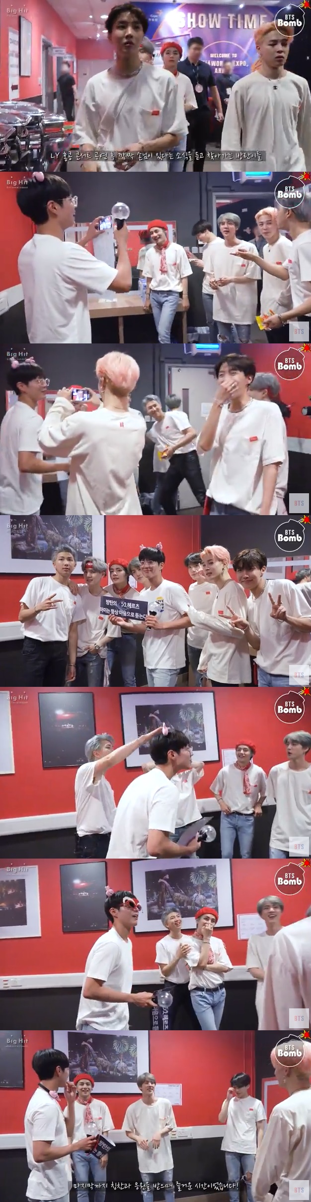 5月29日に公開されたBTSのユーチューブ動画「BANGTAN BOMB」では、コンサート終了後、“スペシャルゲスト”が来ていると聞いたBTSのメンバーたちがパク・ボゴムと対面する姿が映された。