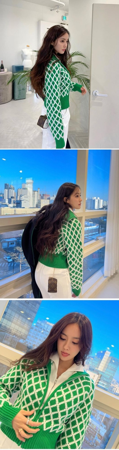 公開された写真のヒョミンは、グリーンと総柄ニットカーディガンに白のパンツを合わせ、Louis Vuitton(ルイ・ヴィトン)のミニバッグでアクセントをつけたスタイルを披露。ウェーブのかかったロングヘアーはナチュラルにおろし、爽やかなファッションと美貌で目を引いている。